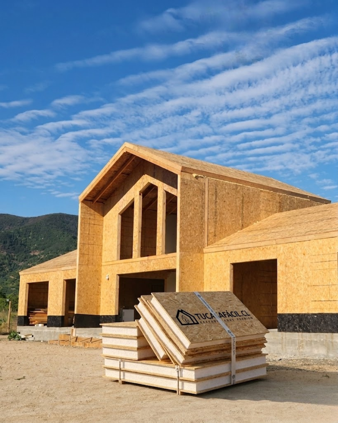 En español, PANEL ESTRUCTURAL ISOTÉRMICO consiste en dos placas de OSB APA + un alma de EPS. Se caracteriza por su potente aislación térmica, potente estructura y rápido armado.